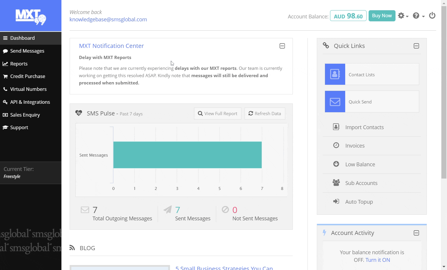 1. Click on the cog icon on the top right-hand side of MXT. Under the 'Settings' heading, select 'SMS Settings'.