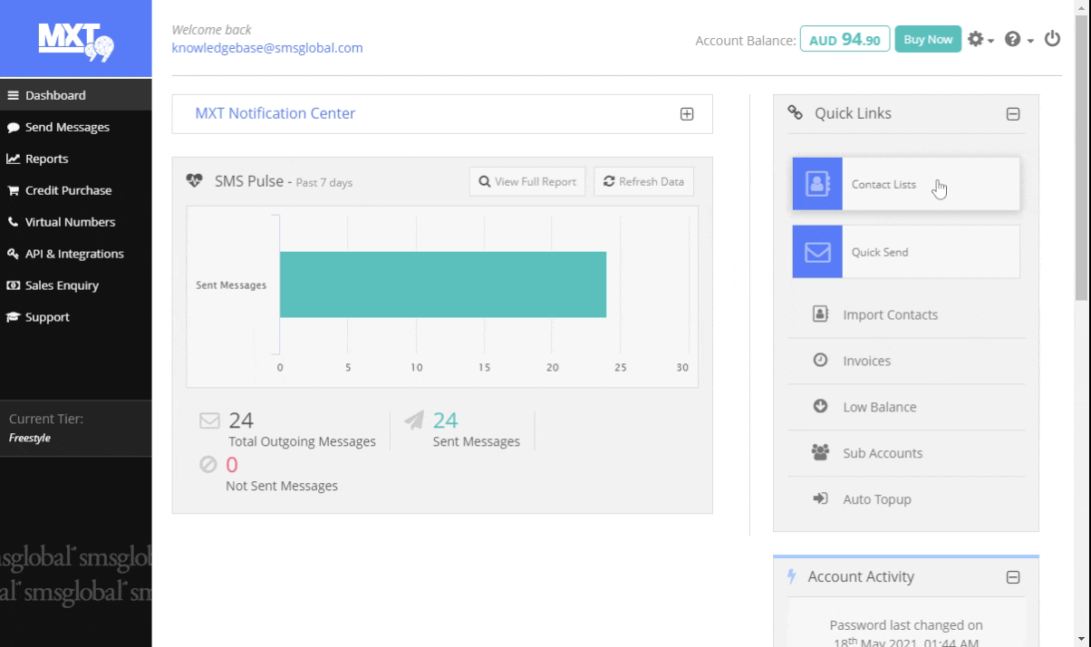1. To access Settings, click on the 'Cog' icon on the top right-hand corner of MXT. Underneath 'Billing', select ‘Auto Top Up'.