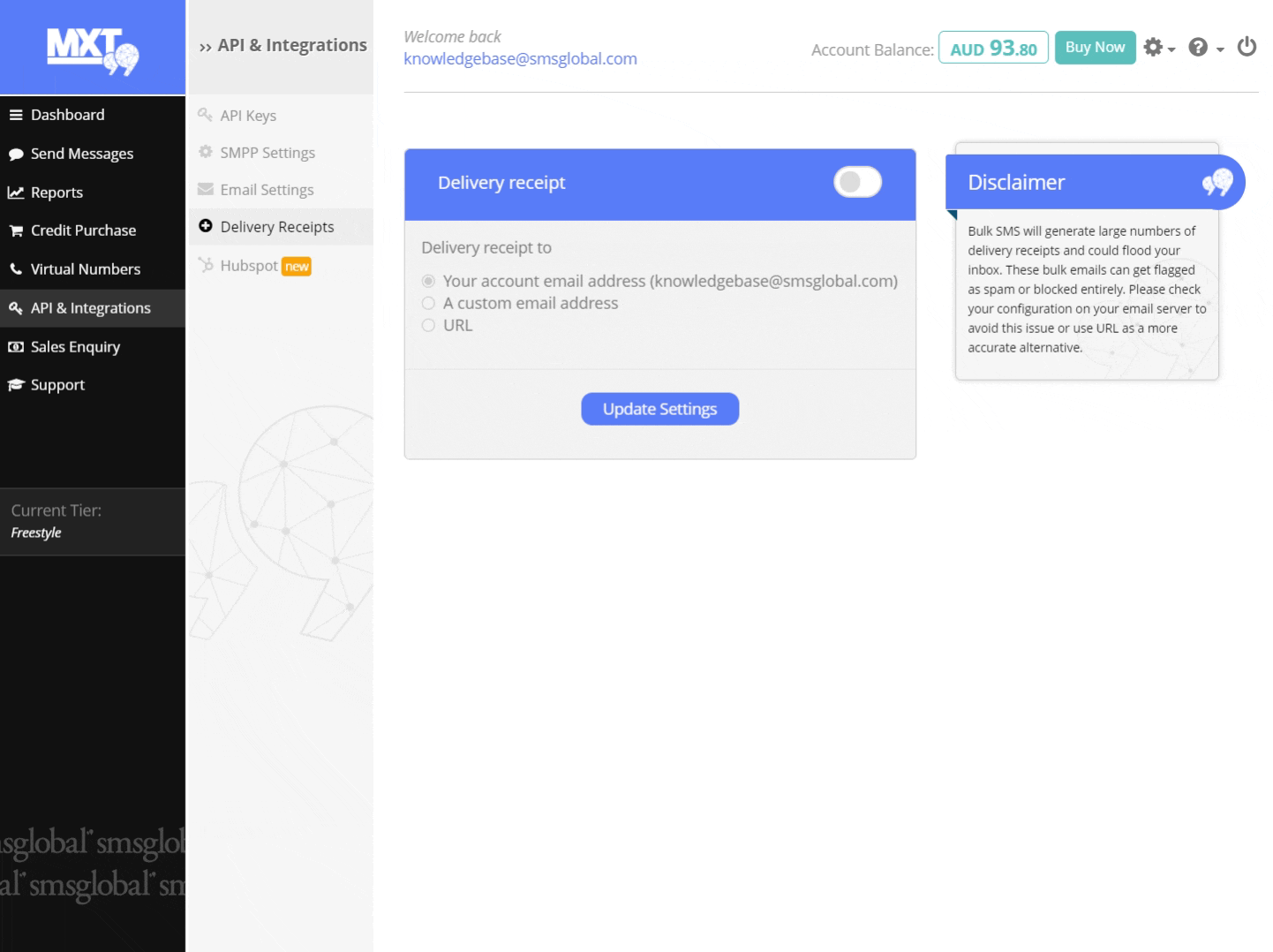 Note: notifyUrl SMS status updates are separate to Delivery Receipts (DLRs).